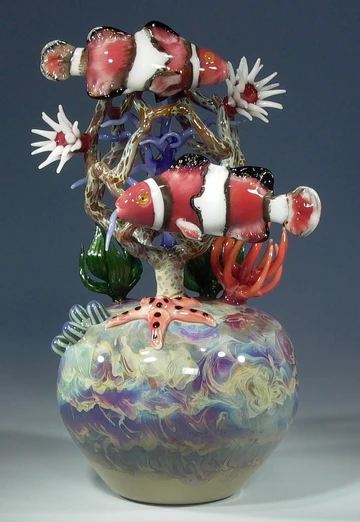 The skill and process required to produce these breathtaking works of art takes years of experience to achieve. One mistake during the intricate crafting of these complex glass pieces can result not only in the loss of the work itself but also the forfeiture of countless hours dedicated to preparing and mixing the vibrant colors, as well as laying down the intricate canes of glass. Some of the glass used, known as strike glass, keeps its colors hidden until the piece is fully finished and annealed, adding an element of surprise to the artistic process.